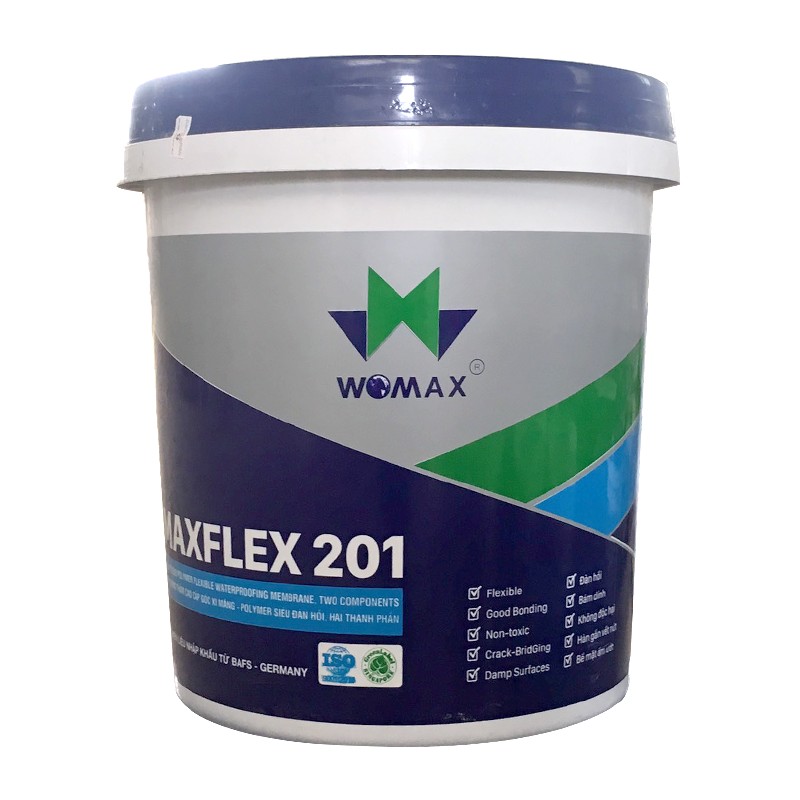 MaxFlex 201 là màng chống thấm 2 thành phần không mối nối, quét lỏng được chế tạo dựa trên cơ sở các polyme chất lượng cao, xi măng và các loại phụ gia đặc biệt khác. Đặc tính tự bảo dưỡng nhờ hơi ẩm giúp cho MaxFlex 201 được sử dụng lý tưởng cho các khu vực ẩm ướt, các loại mái, bao lơn, sàn lộ thiên, tường chắn đất và tầng hầm.